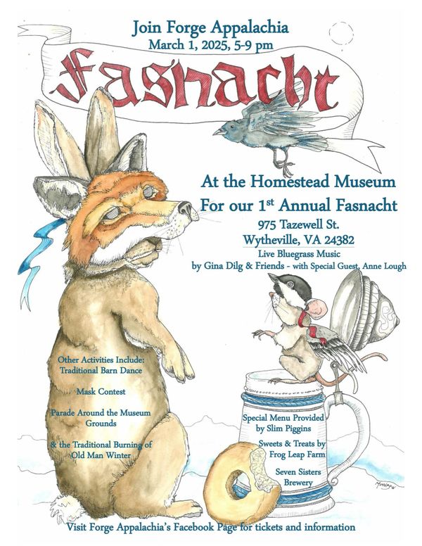 Our mission with Forge Appalachia is to preserve the unique culture of our region. Among Wytheville’s earliest settlers were German immigrants who contributed much in terms of culture and art to the storied history and heritage that is Wytheville. Fastnacht day is the PA Dutch or German tradition associated with Fat Tuesday. It occurs on Fat Tuesday or Shrove Tuesday. (Fast night) Because many choose to fast or deny themselves sweets and treats during Lent, it was common to indulge on Fat Tuesday. Fat/Shrove Tuesday is the Tuesday before Ash Wednesday, which is the beginning of Lent. To prepare for Lent, many religions emptied their pantries of indulgences like lard and sugar. In using up the supplies, the Fastnacht was born. This year, Forge Appalachia in partnership with Wytheville Museums, will host our First Annual Fasnacht celebration; an event that is open for anyone and everyone to attend. Sweets, treats, good food, ales, and merriment will be plenty! We’ll also have a traditional burning of Old Man Winter to conclude festivities and mark the end of cold days.